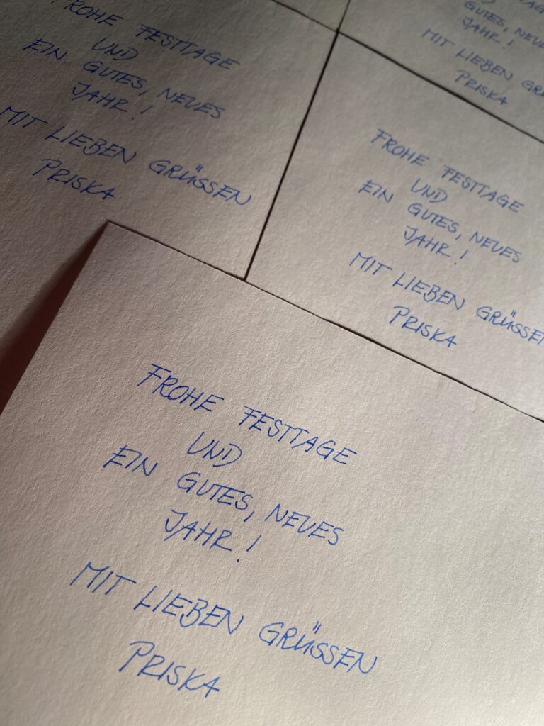 Sie möchten Ihren Freunden, Bekannten oder Kunden etwas handschriftliches überreichen? Nehmen Sie mit uns Kontakt auf, gerne sind wir für Ihre Wünsche offen.